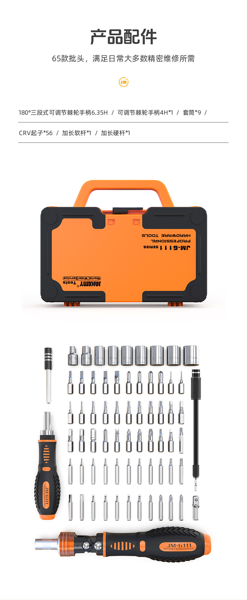 規格型番 JM-6111 (ラチェットドライバー69点セット),JM-8192(180点セット),JM-8183(145点セット)