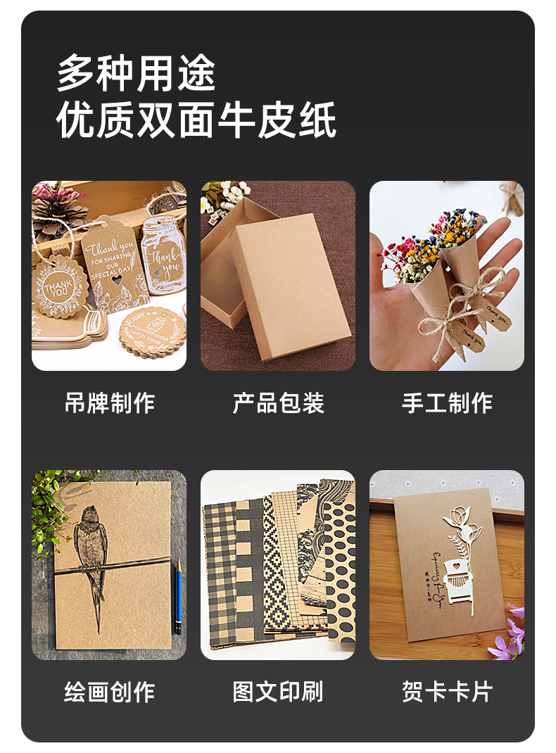 牛卡纸的用途:广泛用于印刷厂,服装厂,手袋厂,纸制品厂,电子厂,五金厂,玩具厂,电镀厂,鞋厂等。