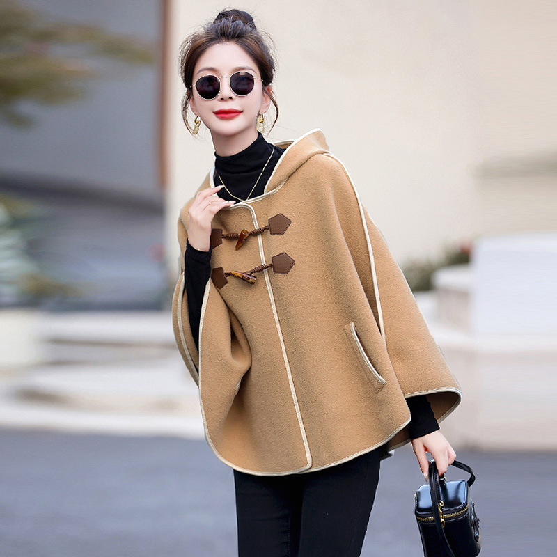 パパイヤ牛乳秋冬ファッション新作韓国風雰囲気フード付きマントコート小柄ショートコート女性ブーム