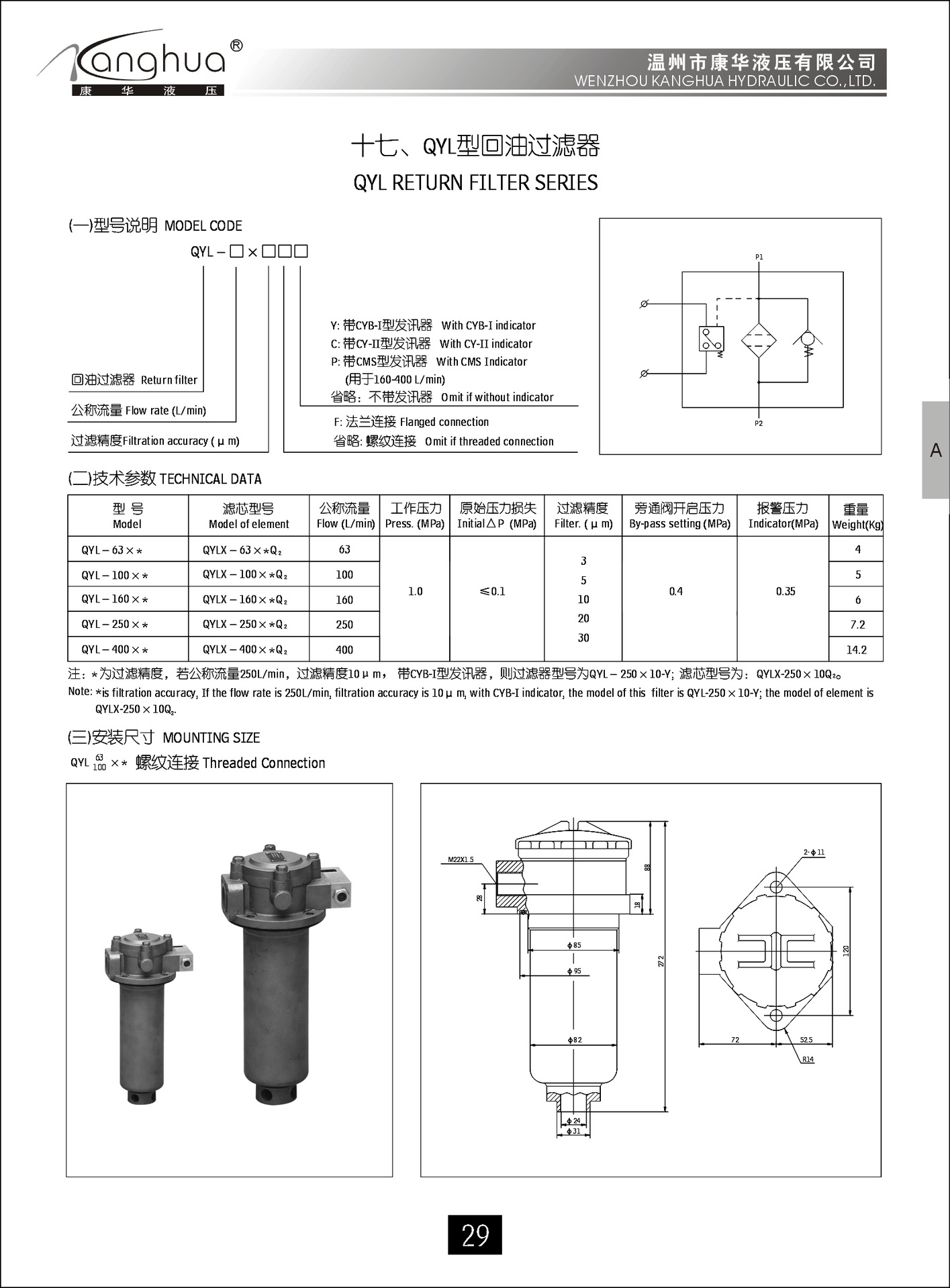 QYL滤芯配套的滤油器参数说明如下: