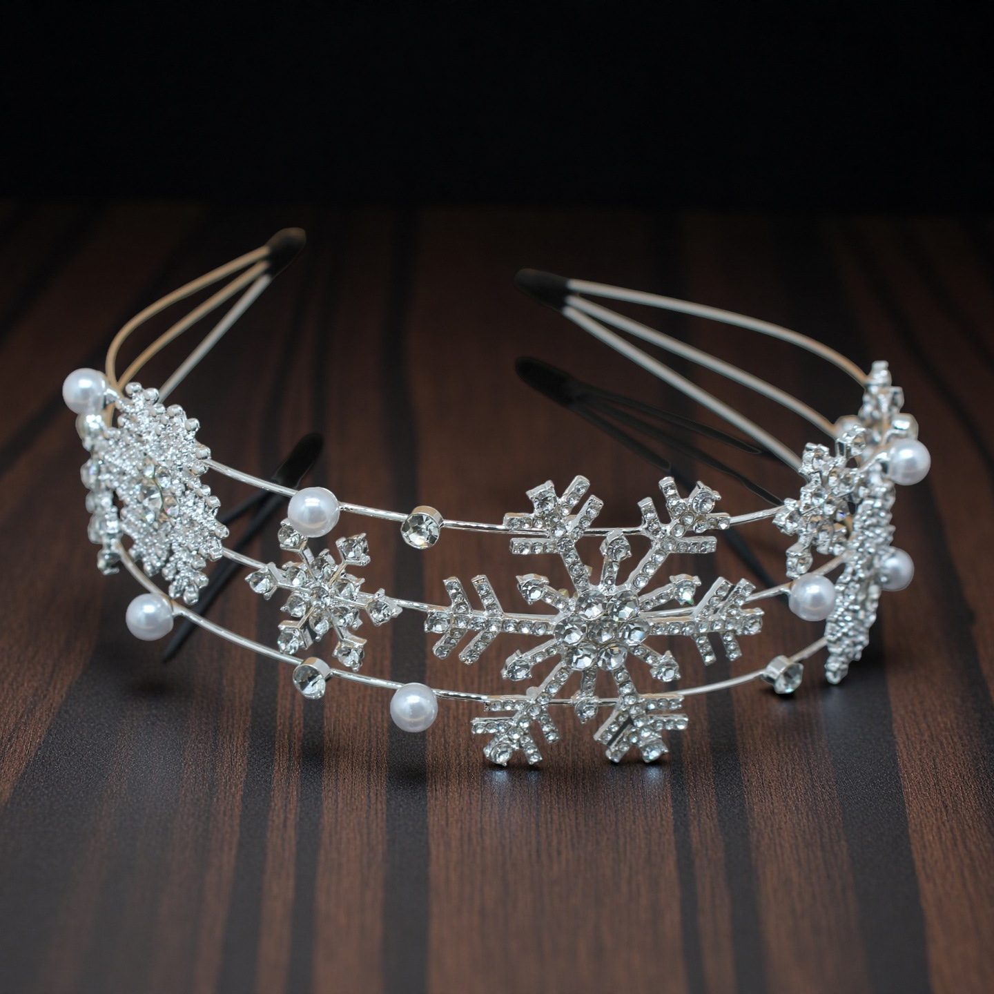 新品厂家直销新娘头饰皇冠发箍 欧美气质银雪花水钻发饰头箍批发