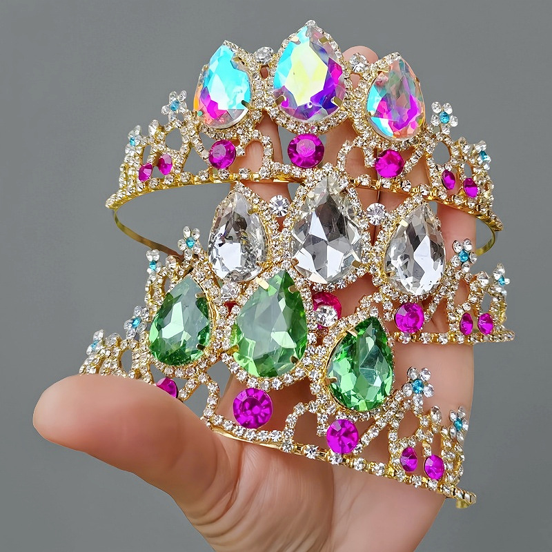 韓国ブライダルラインストーンヘッドバンドクラウン愛ステンドグラスラインストーンパフォーマンスヘッドドレスクリスタル合金クラウンヘッドドレス