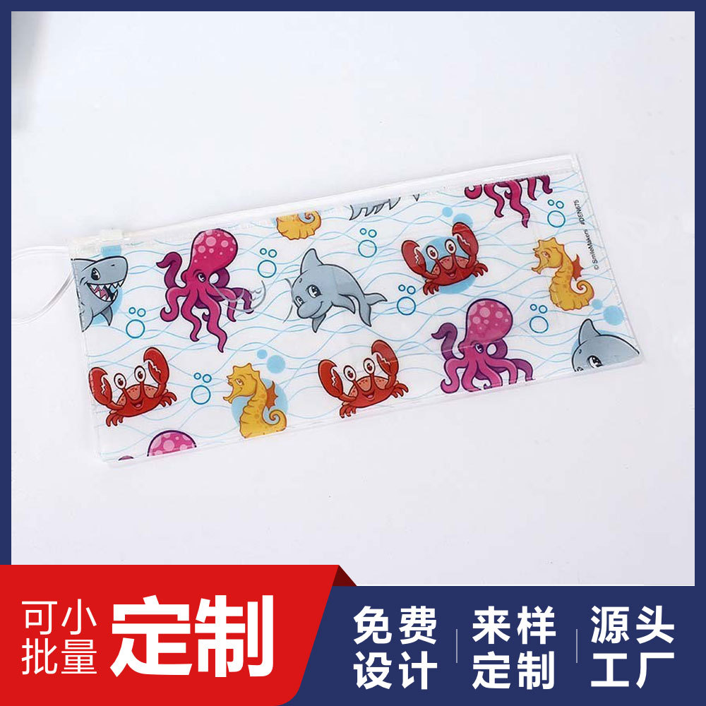 Pvc文房具バッグ学生試験用品ジッパー透明バッグ印刷ロゴ漫画収納かわいい子供ペンバッグ