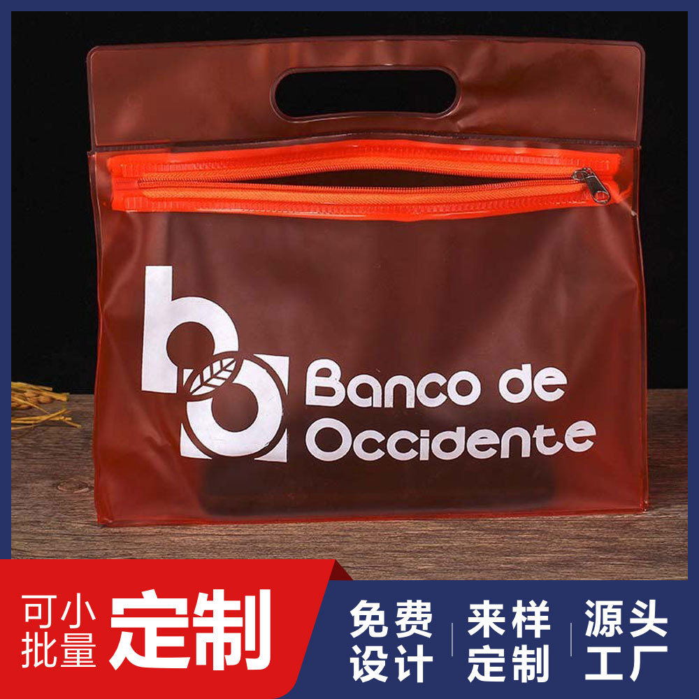 化粧品日用品包装袋オレンジ色ジッパー手挽き穴pvc袋旅行洗面収納プラスチック自立袋