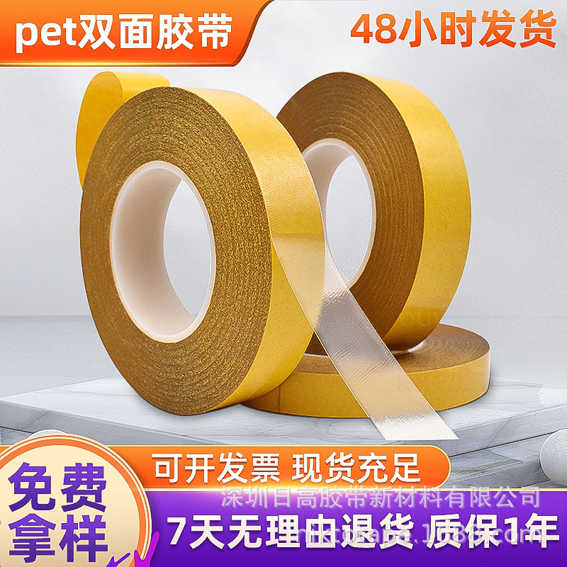 日高黄色pet両面テープ高粘度電子製品基板テープ耐温pet透明両面テープ