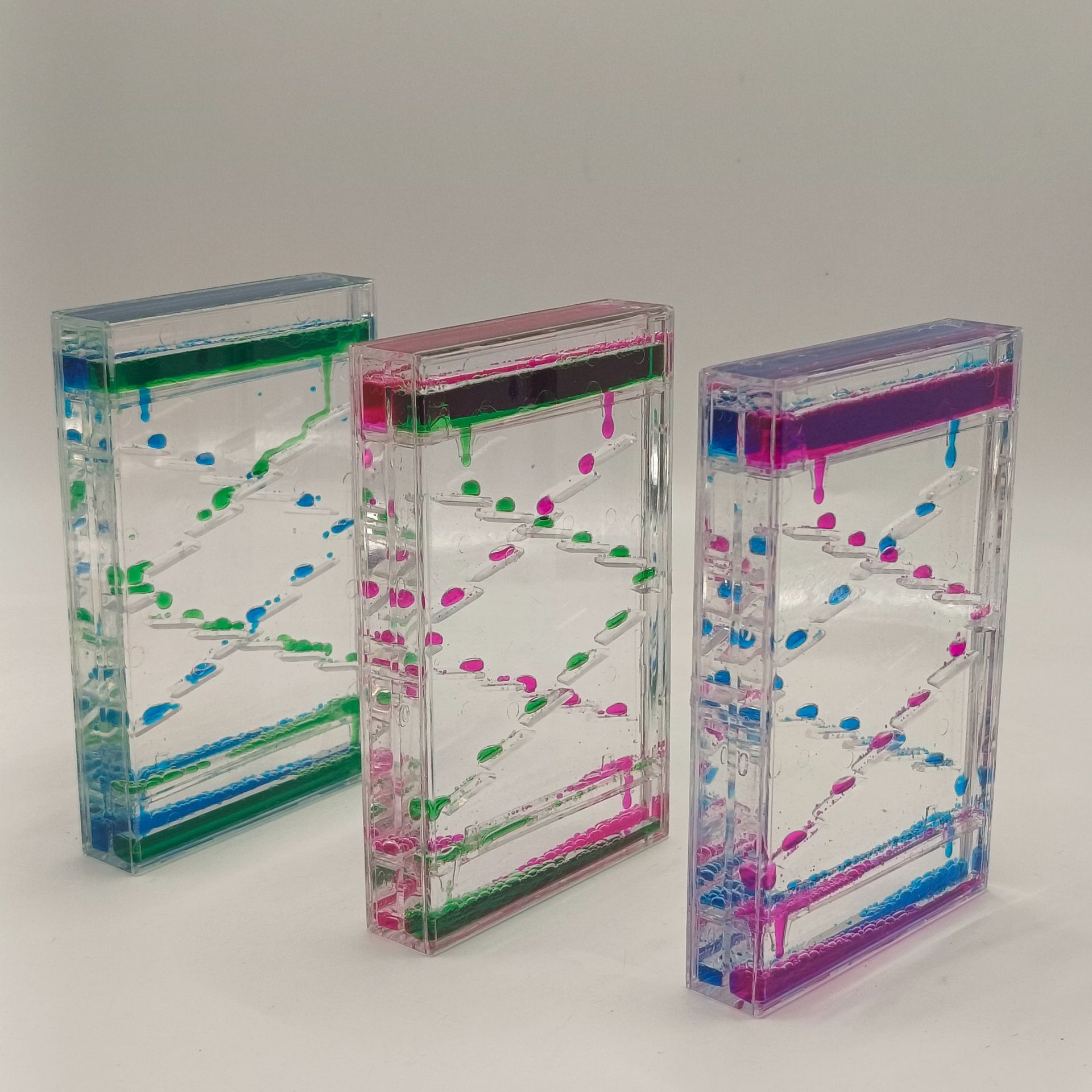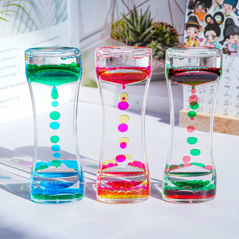 亮丽的彩沙一颗颗轻巧往下飘浮,呵呵!可要好好地研究是什么样的原理,用于摆设。送礼都是佳品。彩色的油滴滴下的时候,动感十足!仿佛在提醒我们时光的飞逝,要珍惜宝贵的时光,高透明亚克力材质,清晰可见。