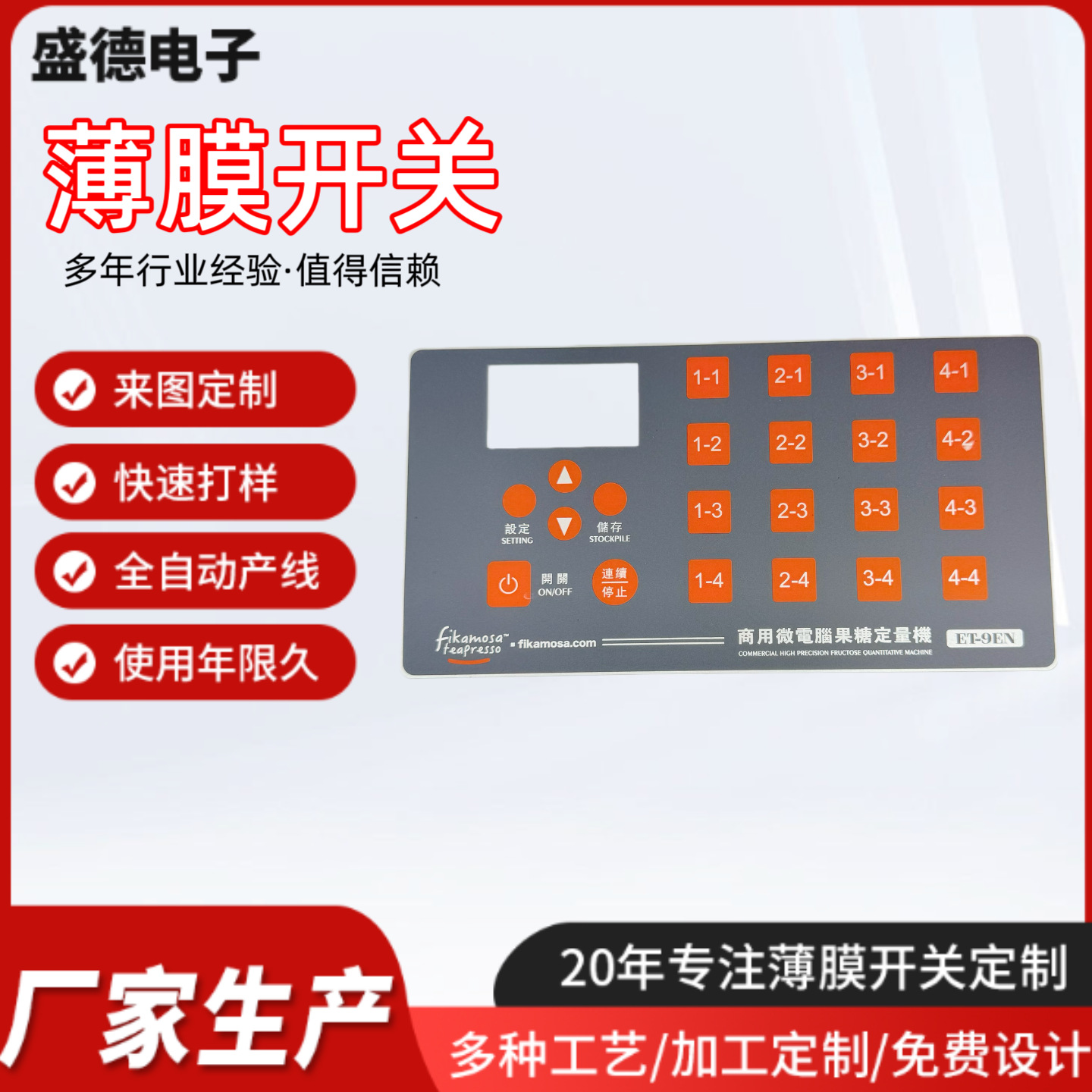 パネル面貼りフィルムスイッチ電子薄膜パネルスイッチリモコン電子秤用ボタン薄膜スイッチ