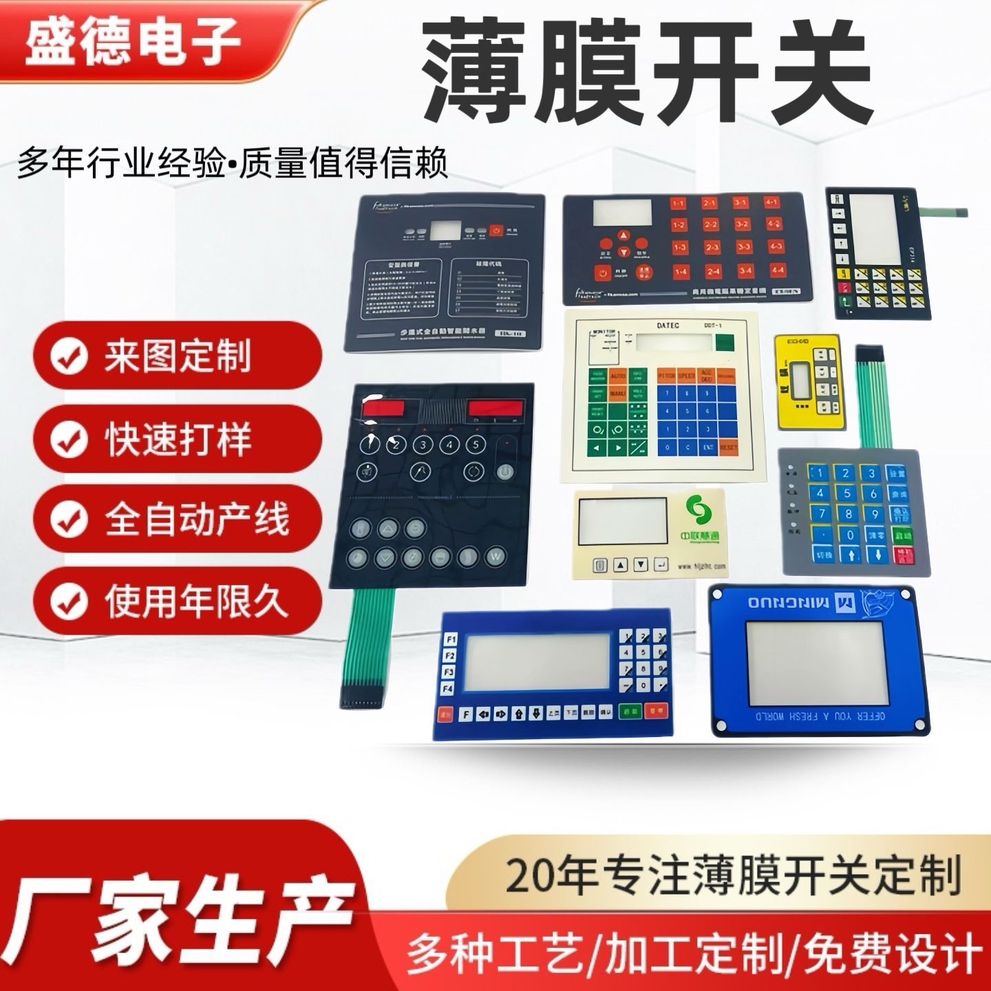 薄膜开关面板亚克力薄膜开关鼓包按键PC面板家电触摸面板厂家