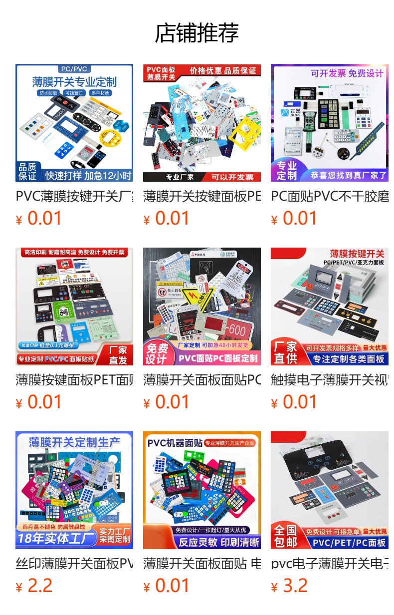 仪器薄膜开关PVC薄膜按键面板开关触摸按键贴PVC控制面板按键面贴