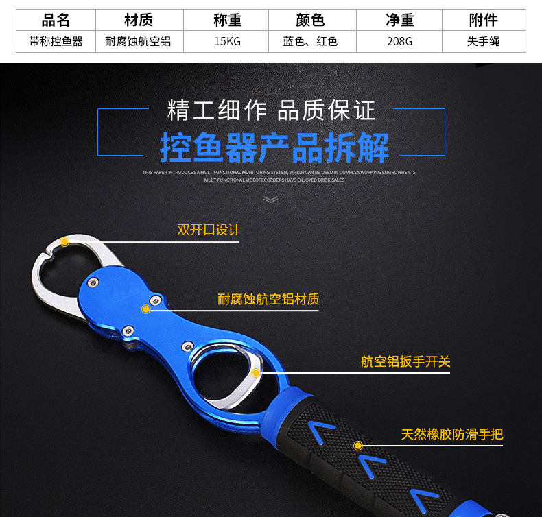 米卡诺 航空铝控鱼器带秤可称抓鱼器控鱼钳路亚钳夹鱼钳 钓鱼工具