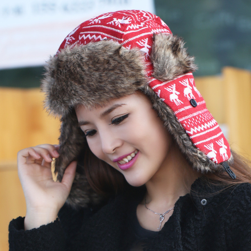 2014新型ファッション韓国カラー雷鋒帽耳保護東北帽雪花小鹿ニット保温帽子卸売り