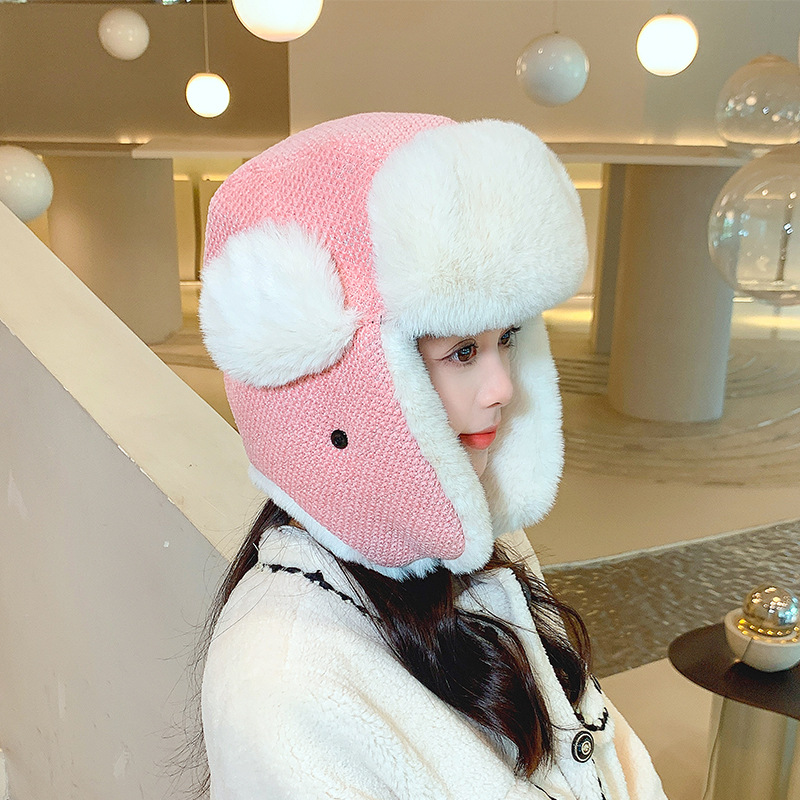 韓国版雷鋒帽子女性冬のぬいぐるみ帽子かわいい保温防寒綿帽子冬自転車防風帽子卸売り