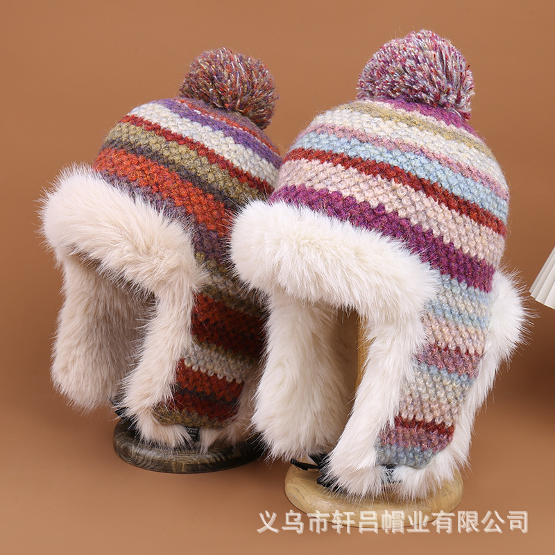 新しい民族風雷鋒帽子の女性のストライプのニットは色を合わせます。