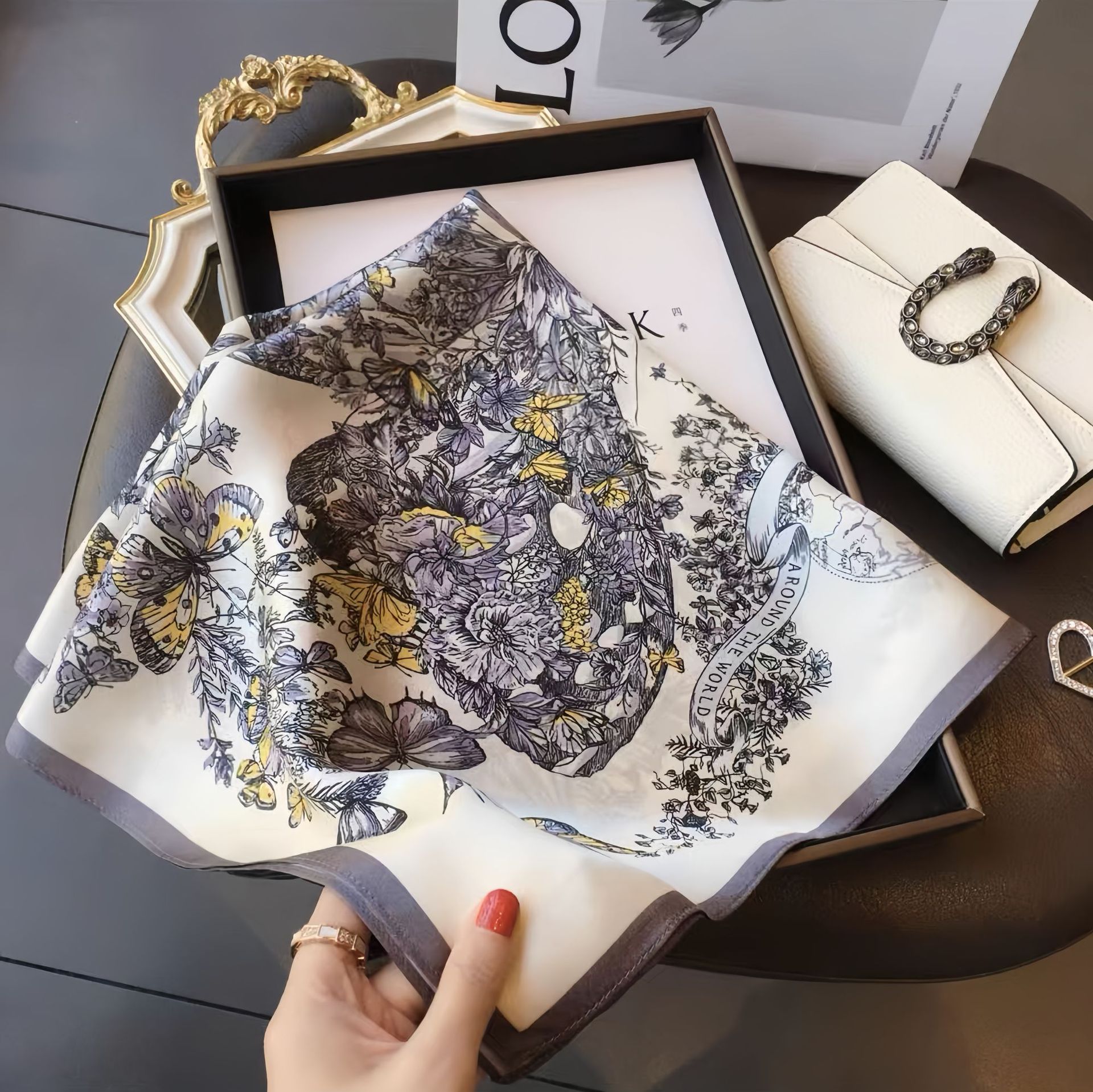 【款式】:素绉缎小方巾 职业 休闲两用
