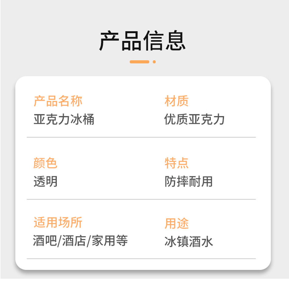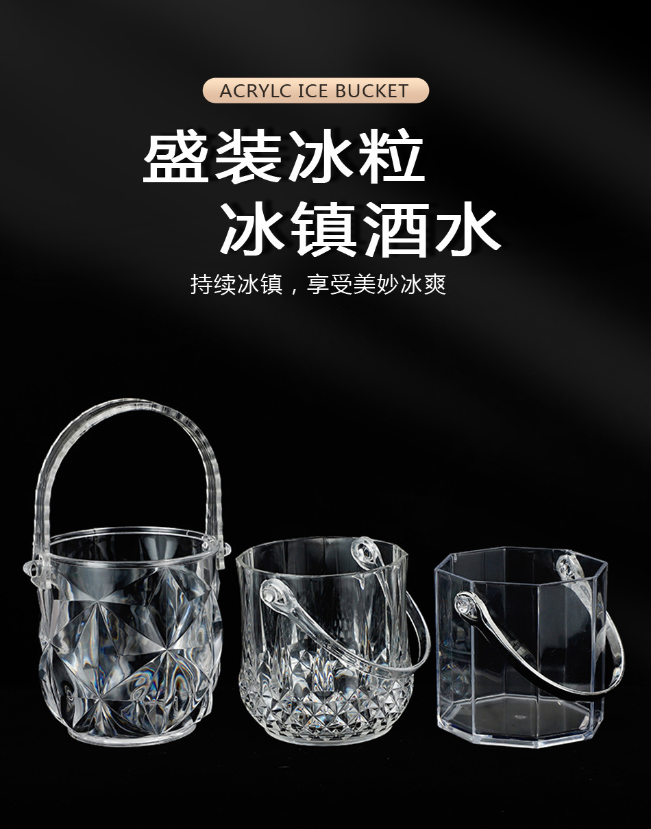 亚克力冰桶 耐摔家庭酒吧KTV网红冰粒桶透明塑料冰块夹香槟啤酒桶