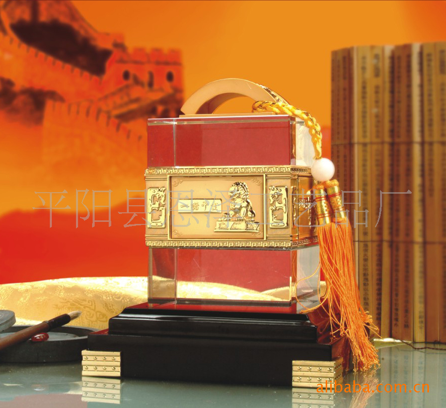 此印章以中国传统名贵材质琉璃和水晶制作,精工细雕,栩栩如生。饰纹或雅菊惠兰,或花开富贵,整个产品既富有地方特色,有蕴涵传统文化,尊贵又不失高雅,是办公用品,或商务赠品的理想产品。