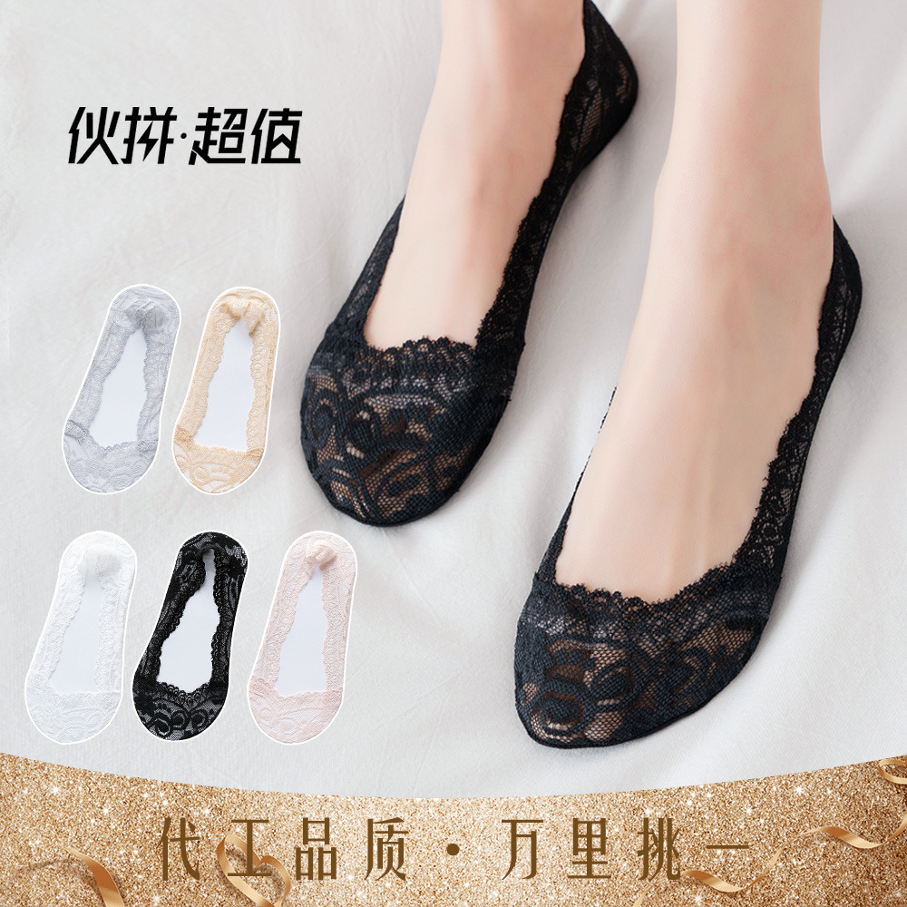 春夏の韓国版レースの靴下の女性のシリコンの滑り止めの浅い口の隠れた靴下の純色の綿の底の靴下のメーカーは卸売りします。