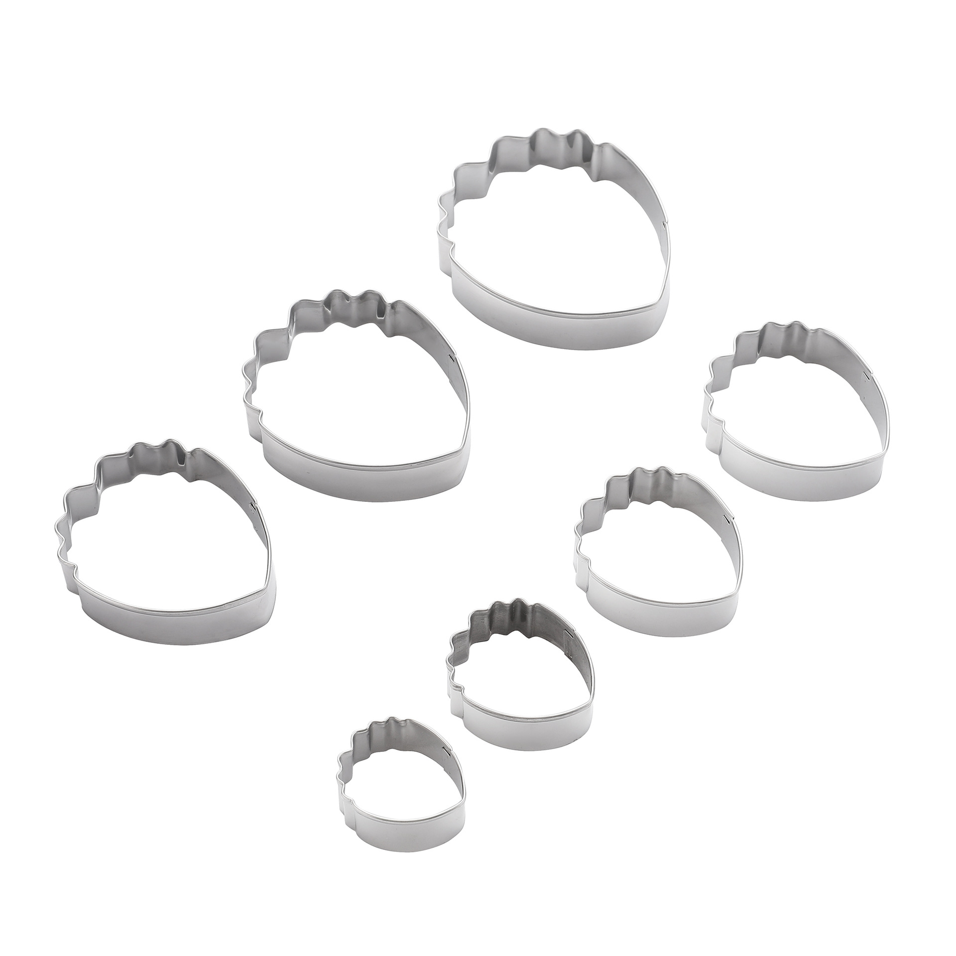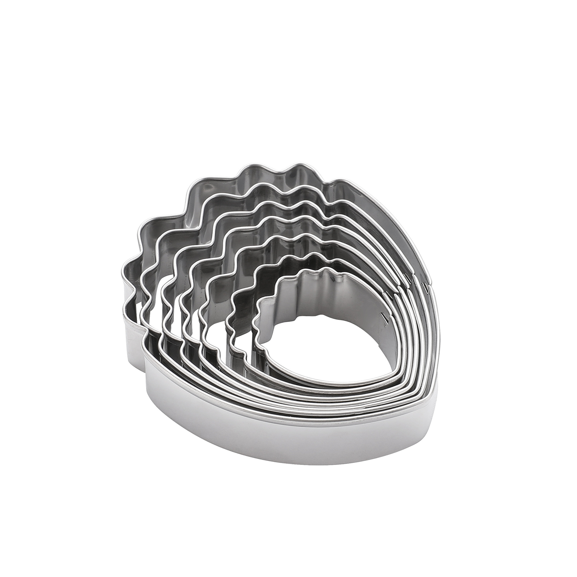 使用方法:将翻糖先放在翻糖硅胶垫上用擀面杖擀平,然后用这款花瓣模具的7个款分别切2-3个相同尺寸的花瓣形状,在花瓣的中间处插入提前准备好的铁丝,将其放在海绵垫上,使用不锈钢雕刻组将花瓣的边缘擀出花瓣边缘的立体感,接着将准备好的色素涂抹上去,然后将花瓣放在晾花垫上晾一段时间。最后等花瓣定型后,将花瓣从小到大围放在一起,即是一朵美丽逼真的牡丹花。