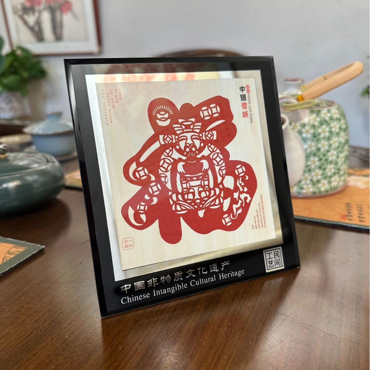 中国风小玻璃边框摆台非遗手工制压花剪纸作品装裱框福字蔚县剪纸