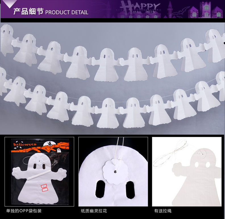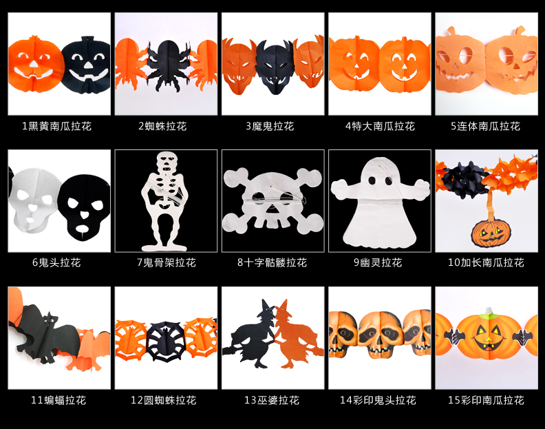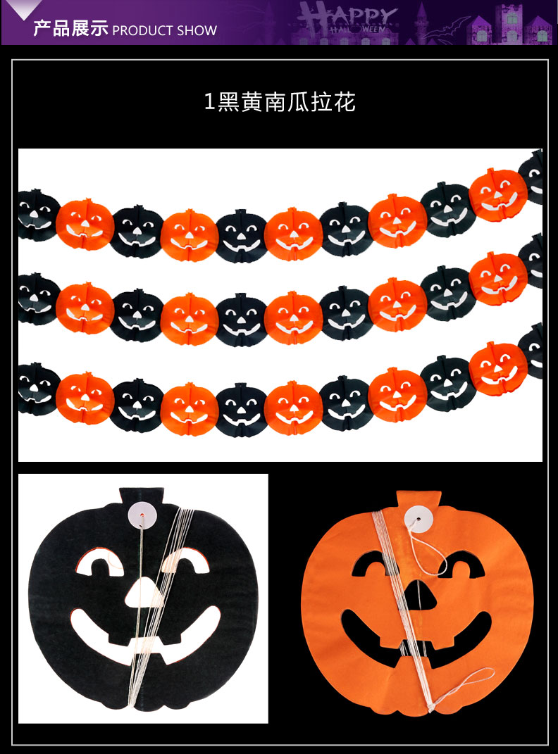 万圣节纸拉花:南瓜拉花现货有2米,3米长度,请注意拍下来,量大优惠!