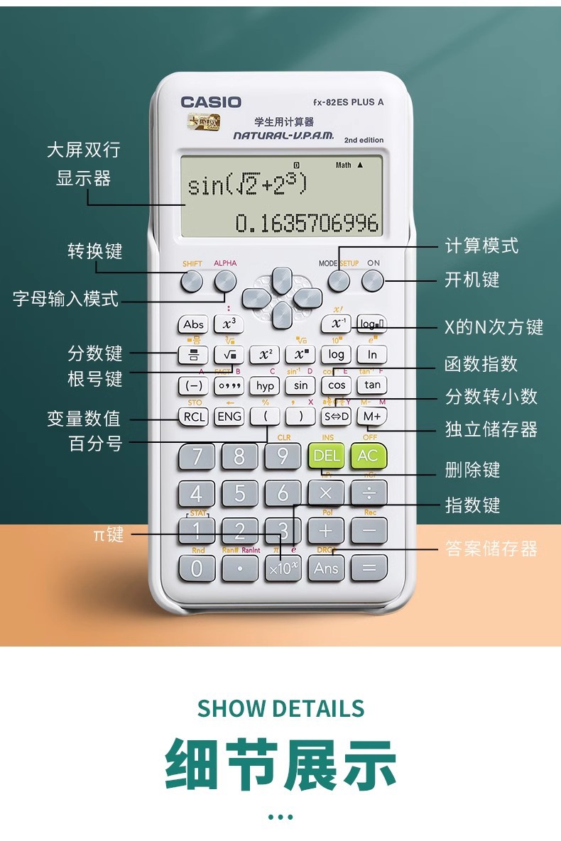 卡西欧FX-82ES PLUS A多功能学生考试计算器初高中函数科学计算机