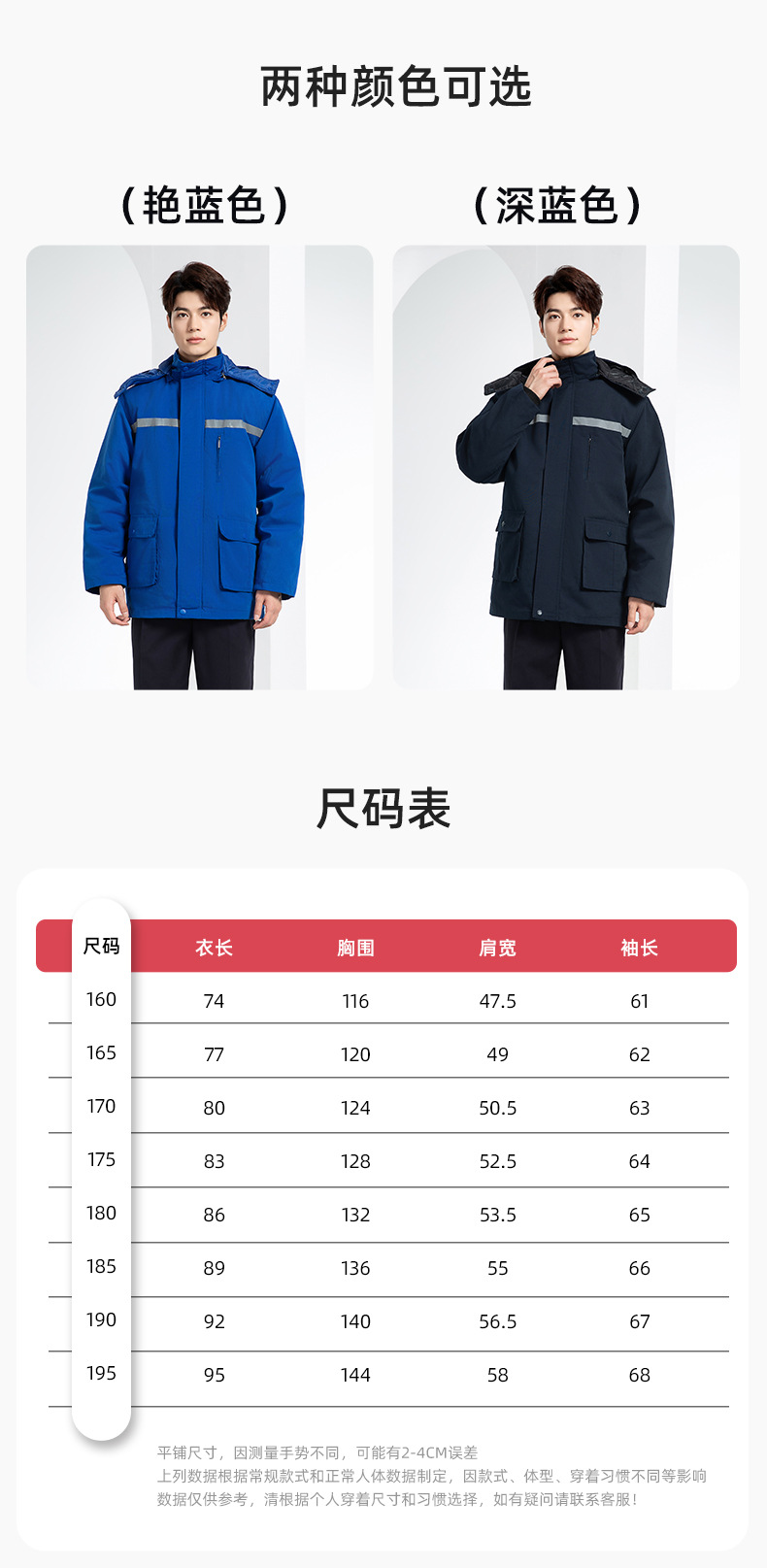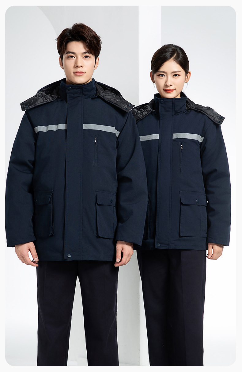 冬の作業服はカスタマイズしてベルベットをつけて保温中長防寒冷凍庫の不動産工場に刺繍の綿入れを印刷する