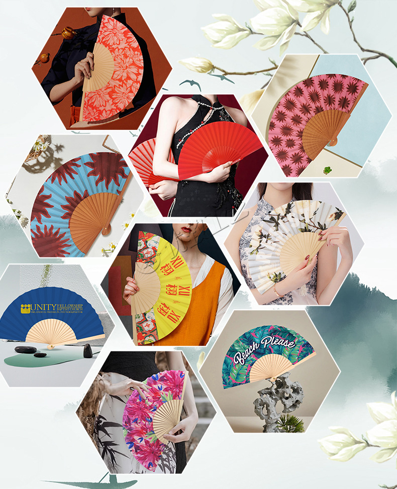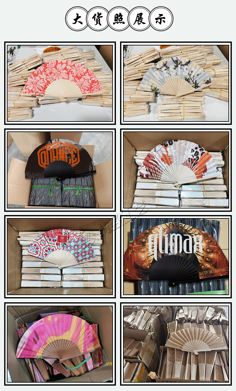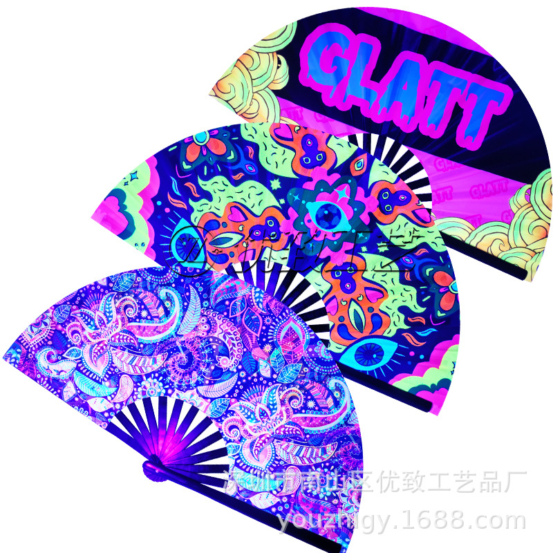 国境を越えたソース工場は、大規模なファンスポットUV工夫ファン竹骨布面折り畳みファン蛍光ファンを提供している