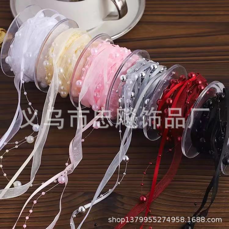 クリスマスフラワーパールリボン織りビーズリボンフラワーギフト装飾パールチェーンリボン手作り DIY 素材