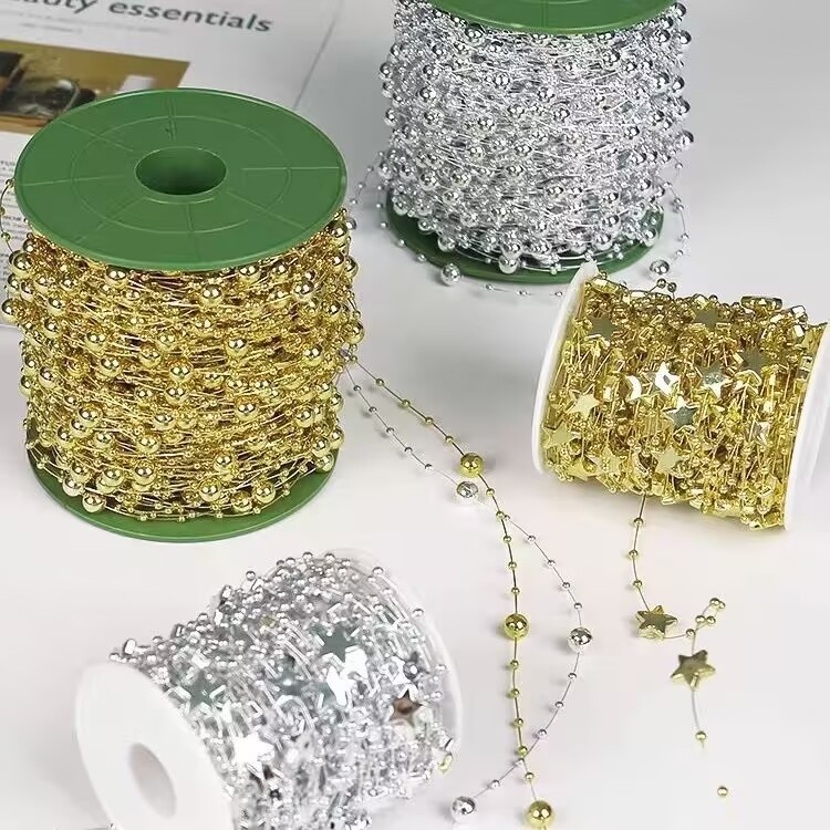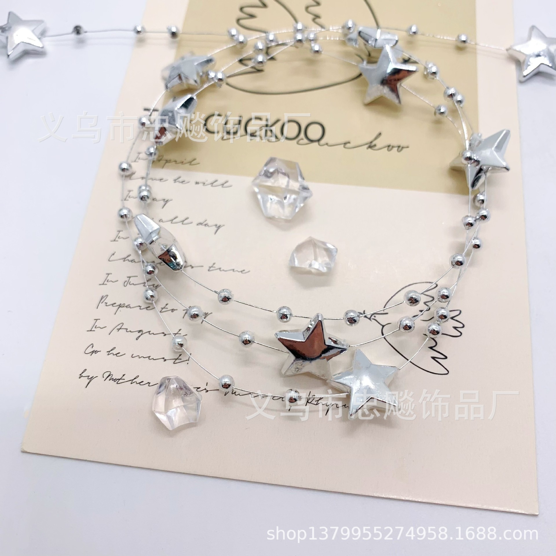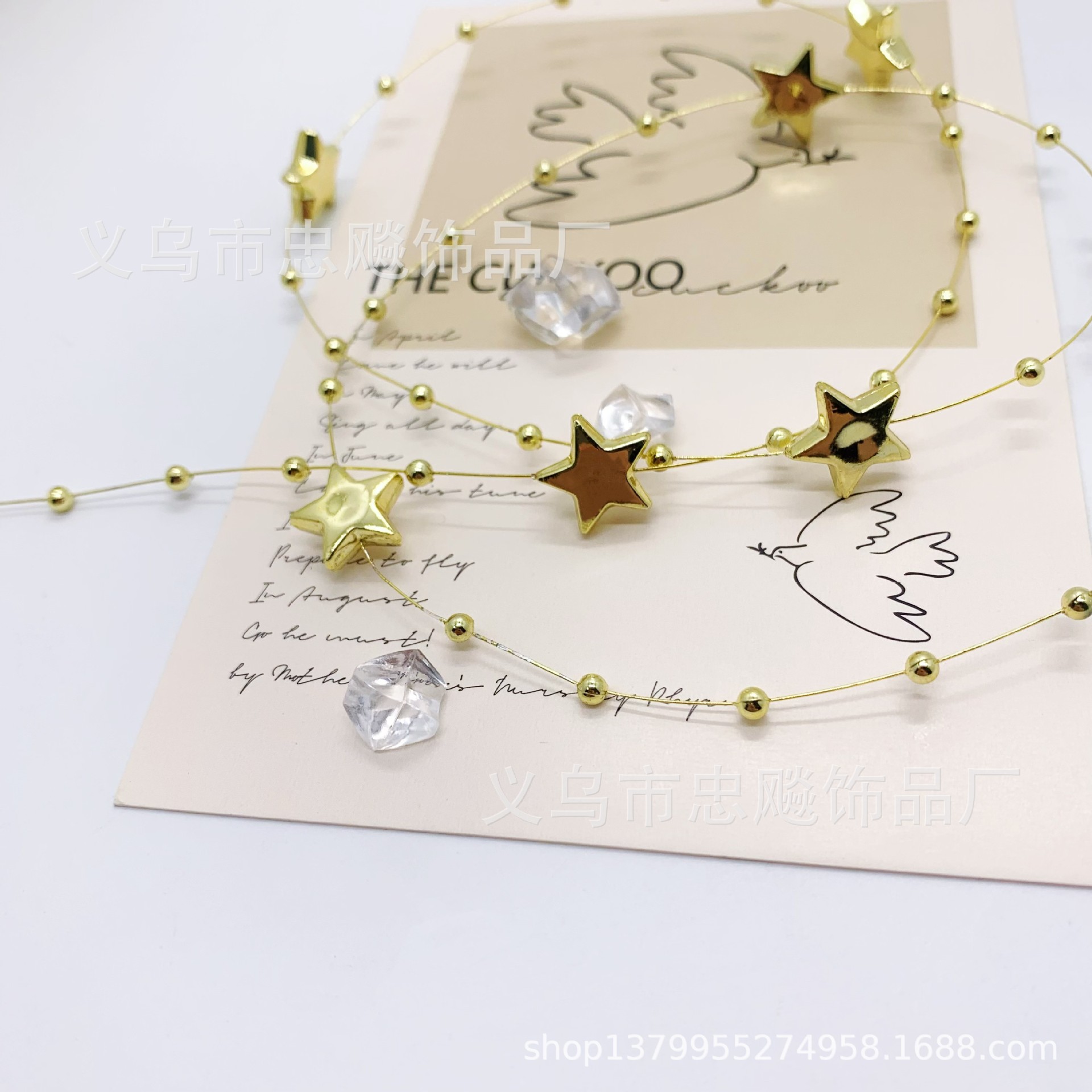 クロスボーダー電気メッキ五芒星チェーンクリスマスツリー飾り釣り糸連結ビーズヘアアクセサリー結婚式装飾アクセサリーDIY手芸