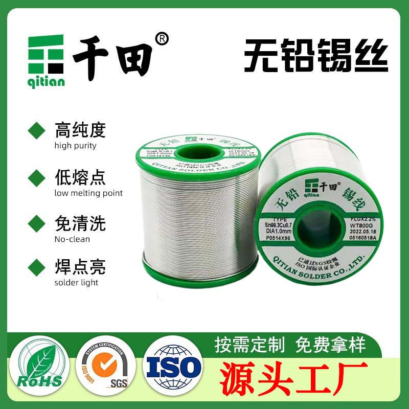 为配合电子连装“绿色”环保理念得以变为现实,千田锡业着重研发低残留物,免清洗且具有优越的润湿性能的无铅焊锡丝,本公司研发的无铅焊锡丝具有独特的优点: