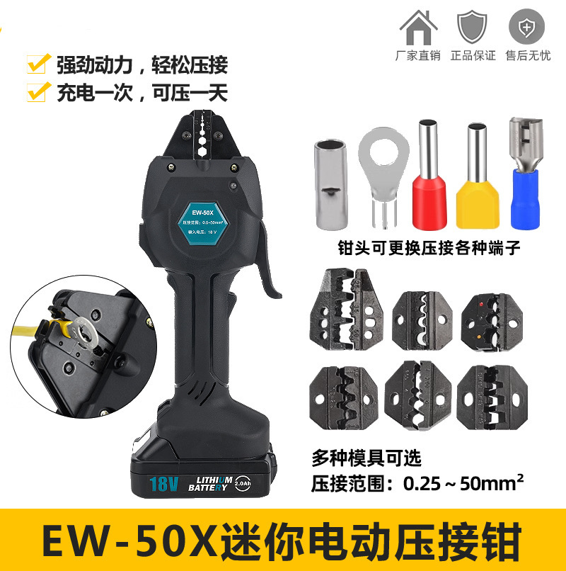 EW-50X充電式圧線クランプ電動圧着クランプ冷間圧線端子プレ絶縁管型裸端子圧線クランプ