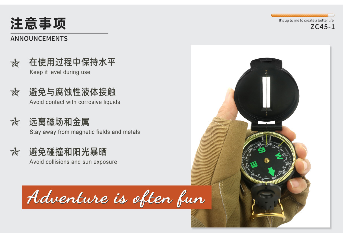 アウトドアコンパス高精度専門方向性オフロード指北針野外用品登山探検生存装備