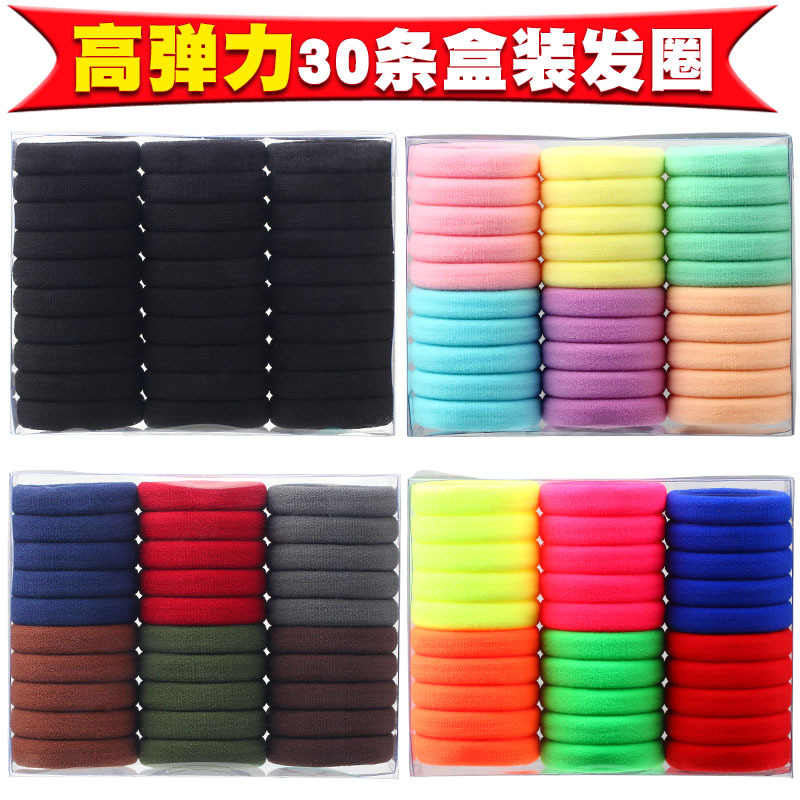 キャンディー色のシームレスなタオルリング30本の箱の中の高弾力の髪ひもは髪の馬尾の髪ひもの女の子の髪飾りを結びます。