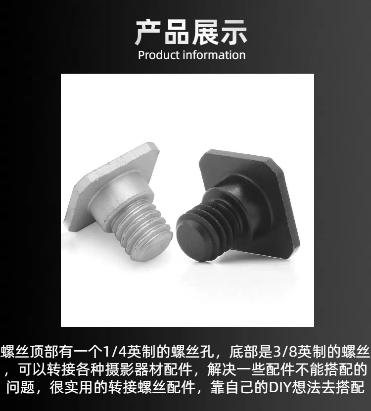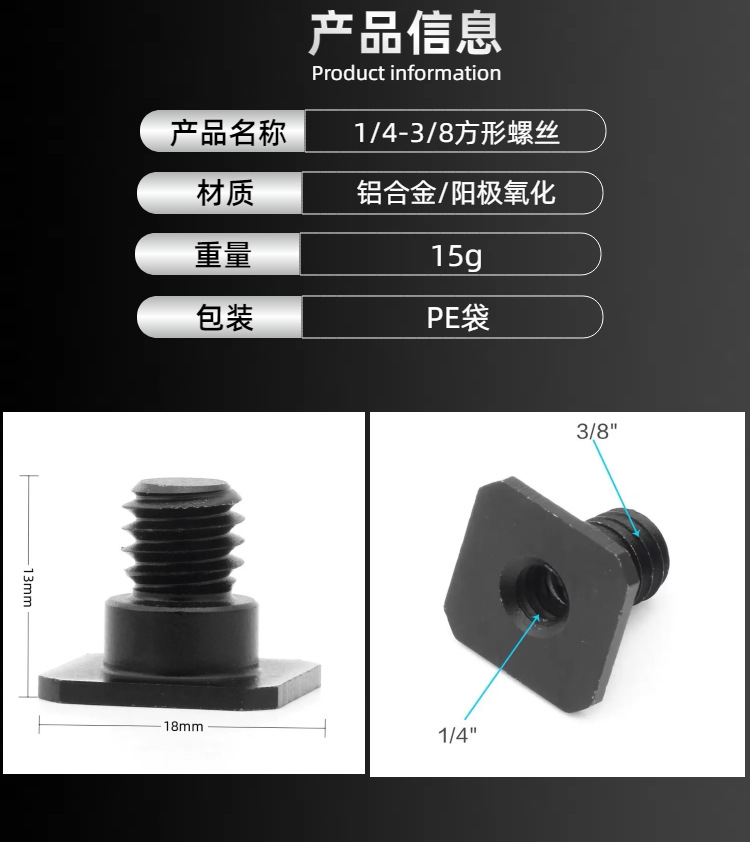 カメラねじ中継ねじ1/4回転3/8雌回転オス変換ヘッドホットブーツ角型アルミねじ
