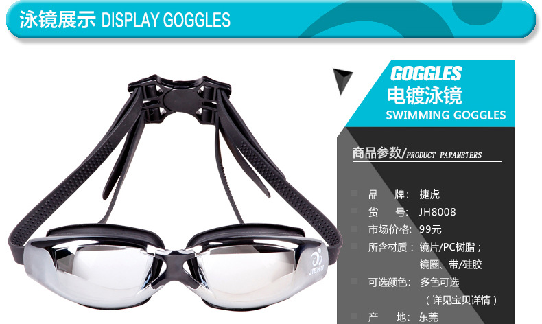 捷虎水泳鏡成人ハイビジョン水泳鏡現物卸売り防水防霧平光近視男女史水泳メガネ