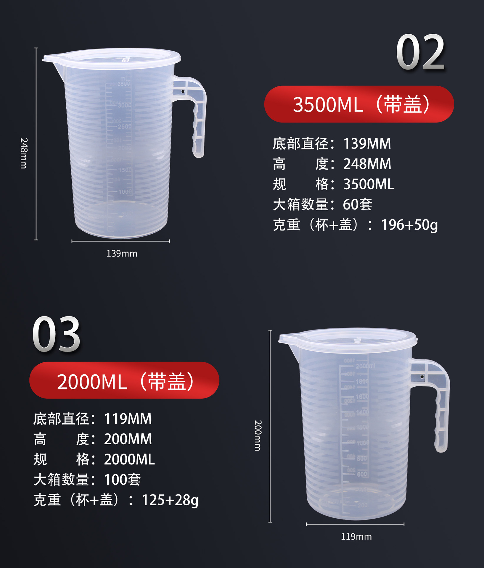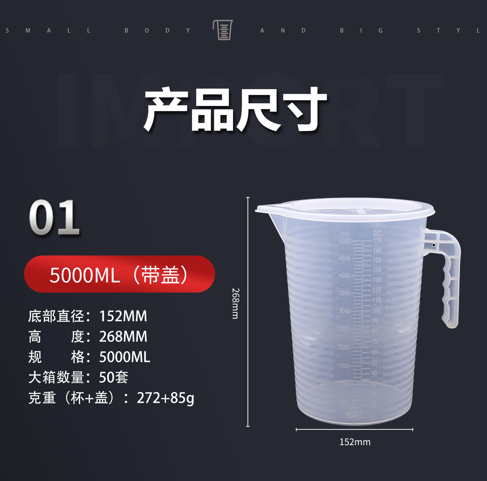 5000毫升上口宽19.5cm底直径16.5cm高26cm 新款带盖量杯可选