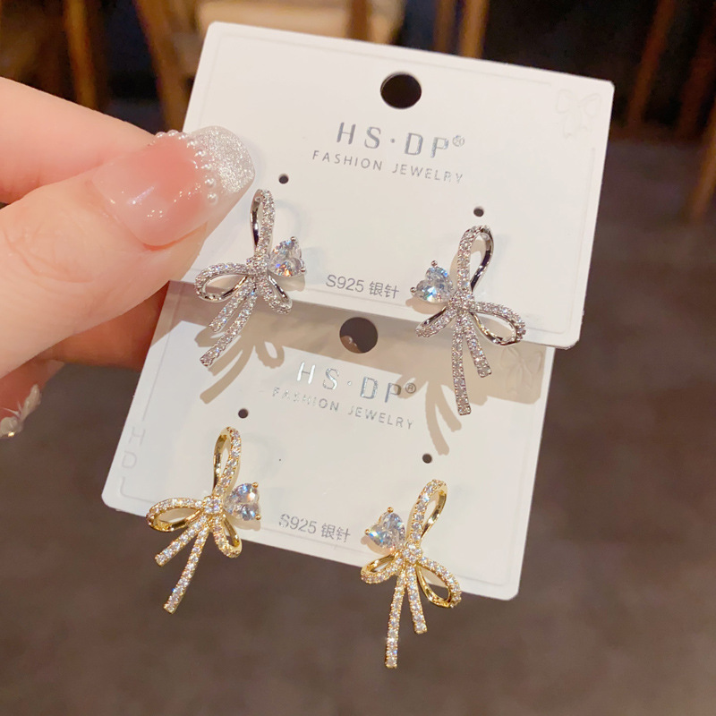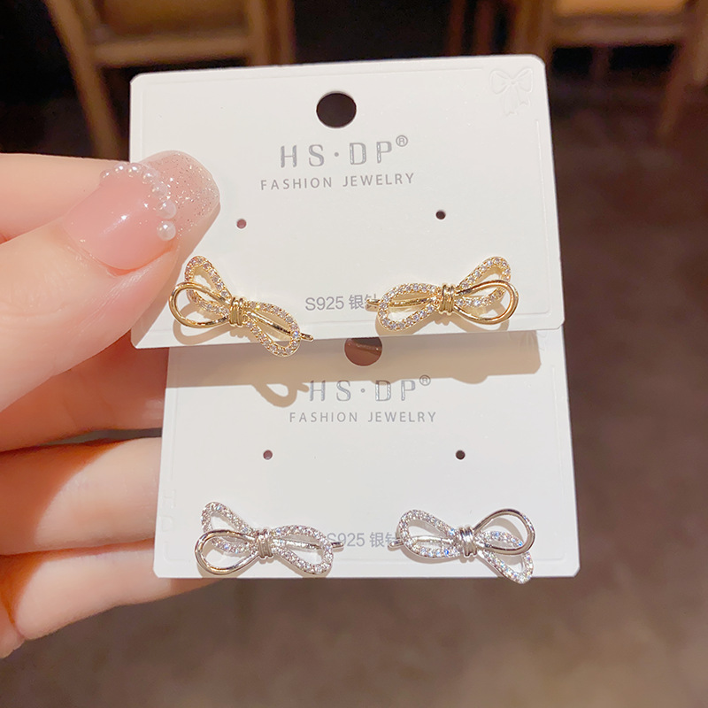 韓国式s925銀針超キラキラ精巧なジルコン蝶ネクタイの女性の小さなデザイン感高級感のある贅沢なイヤリング