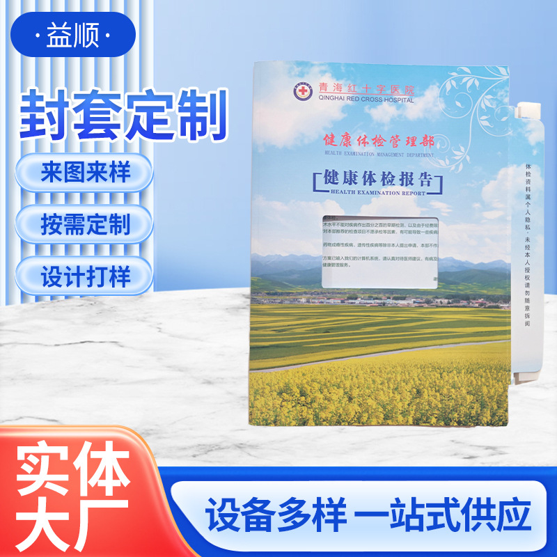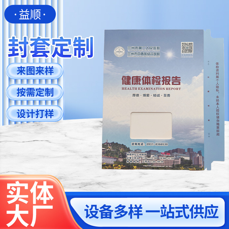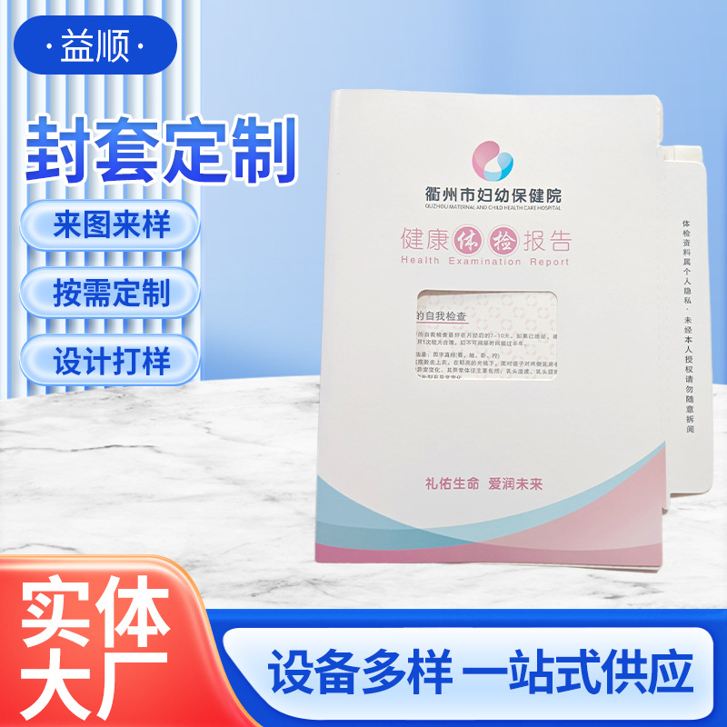 本厂专业从事医院体检报告热熔胶封套加工,拥有完整科学的质量管理体系。欢迎各医院、公司来电洽谈业务。