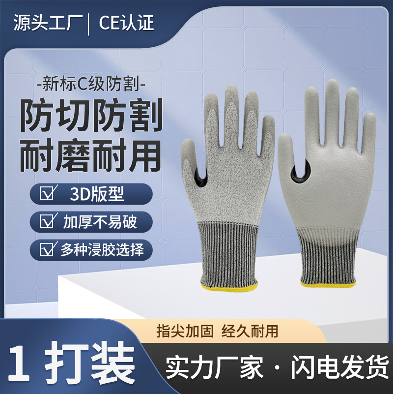CE認証A3レベル耐切創手袋EN388工業用シルクPUコーティングCレベル虎口強化耐切創耐摩耗アップグレード