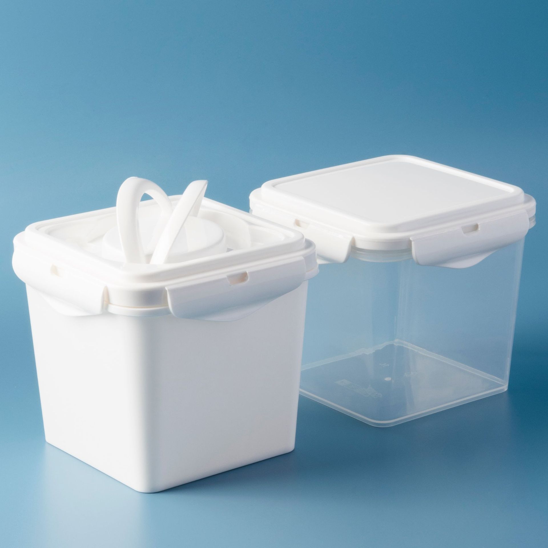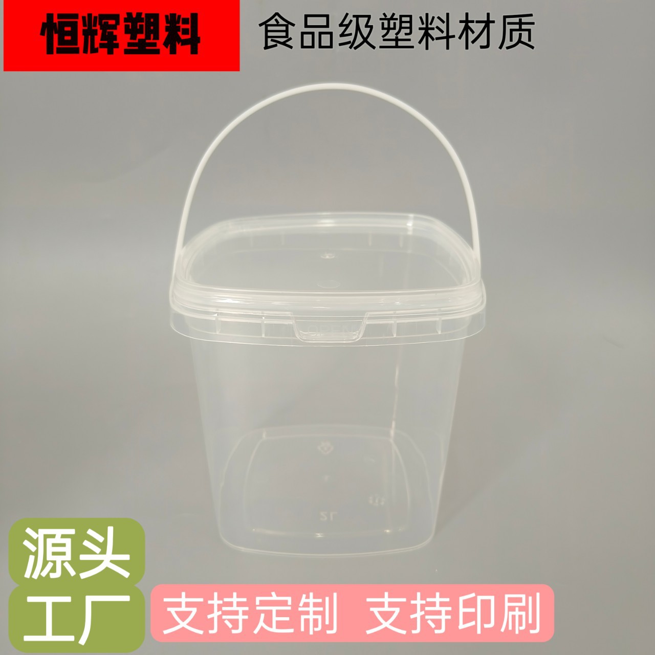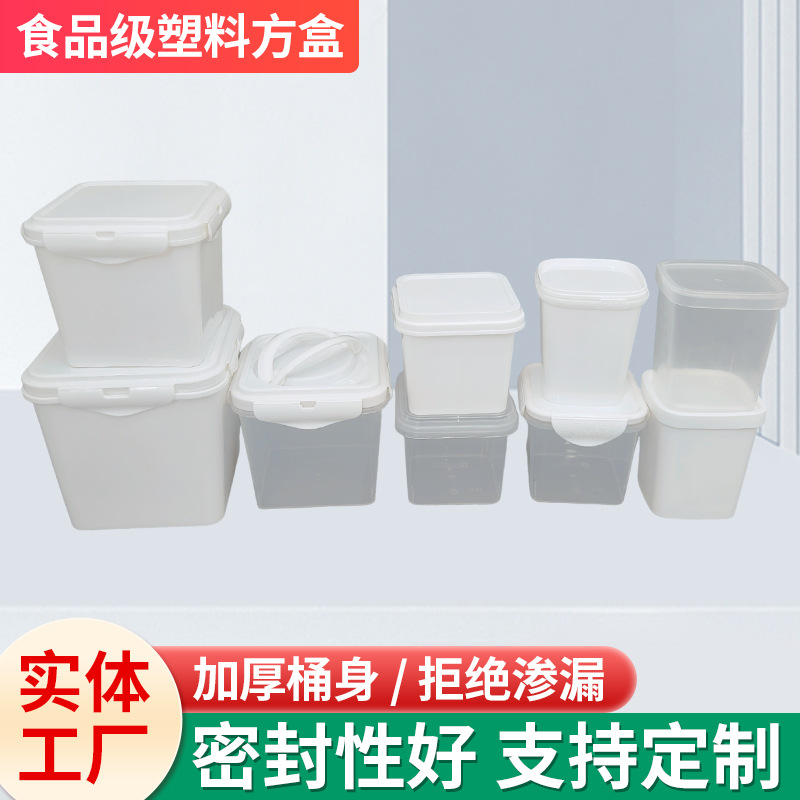 メーカーは1000ml 2000mlのポータブル透明角型バケツプラスチック収納ボックス密封漂白剤バケツ凍結乾燥バケツを供給しています