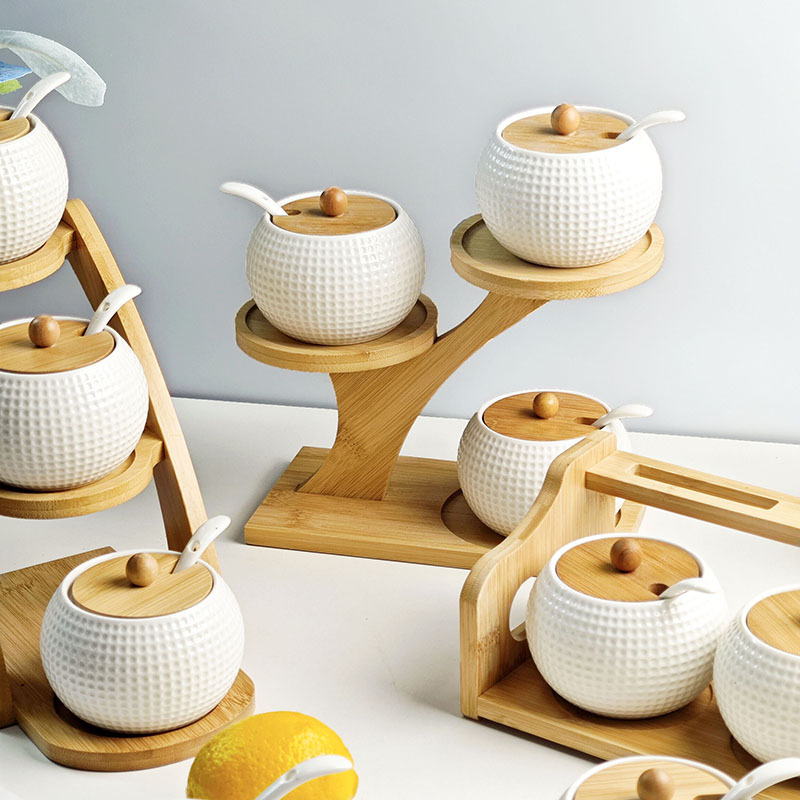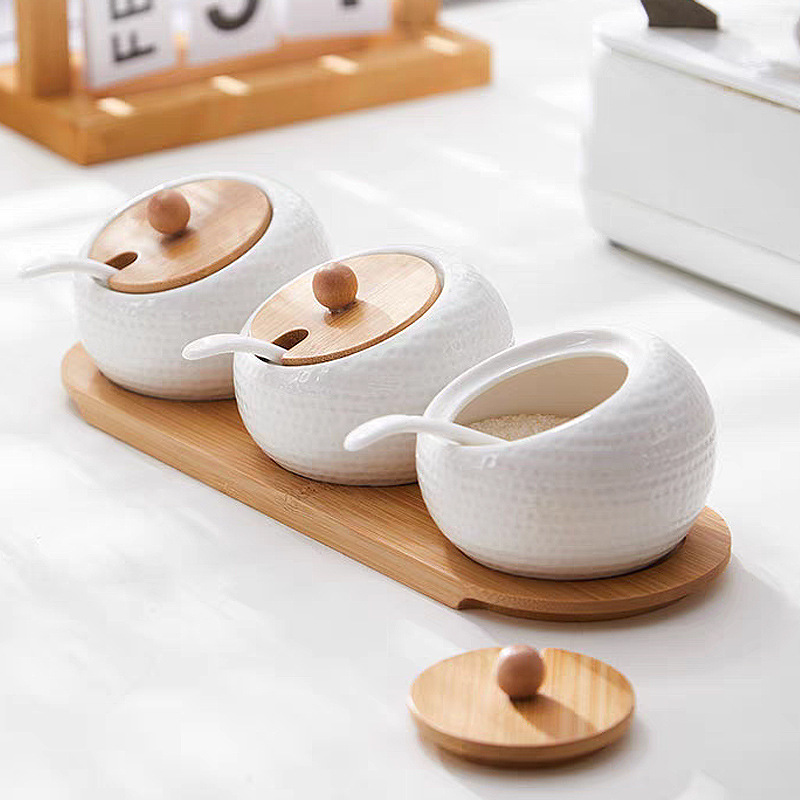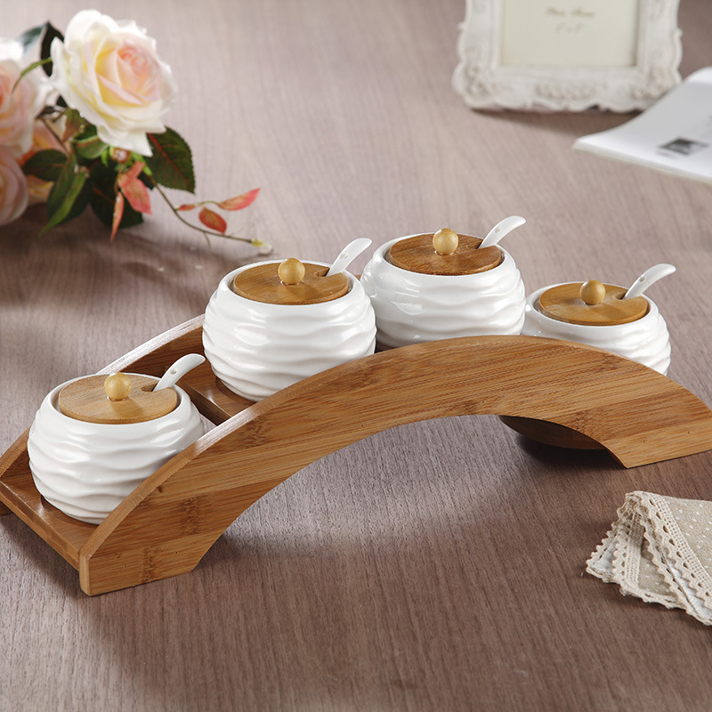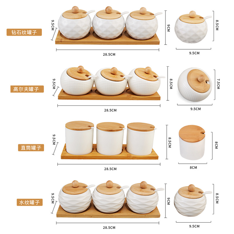 第五,产品盖子采用竹盖,为用户考虑更周全,竹盖不含对人体有害物质,产品美观大方容易搭配家居装修风格,另外由于日常家庭厨房需天天做饭,经常使用该调味罐,偶尔失手也不会打烂。
