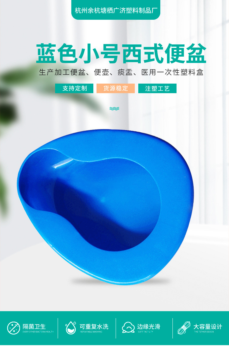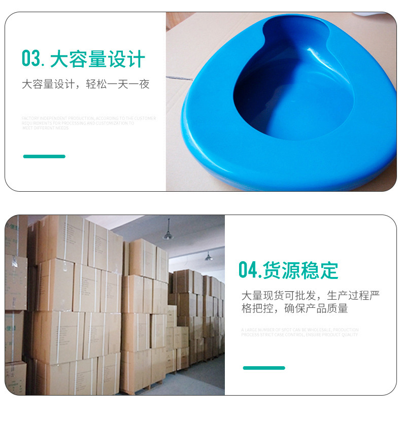 型号PC23208, 塑料蓝色大便盆,注塑料成型  产品克重328±15g,规格345*275*56mm1800ml,24个每箱 ,病人一次专用,装箱尺寸:83×35×58cm,优质外贸产品