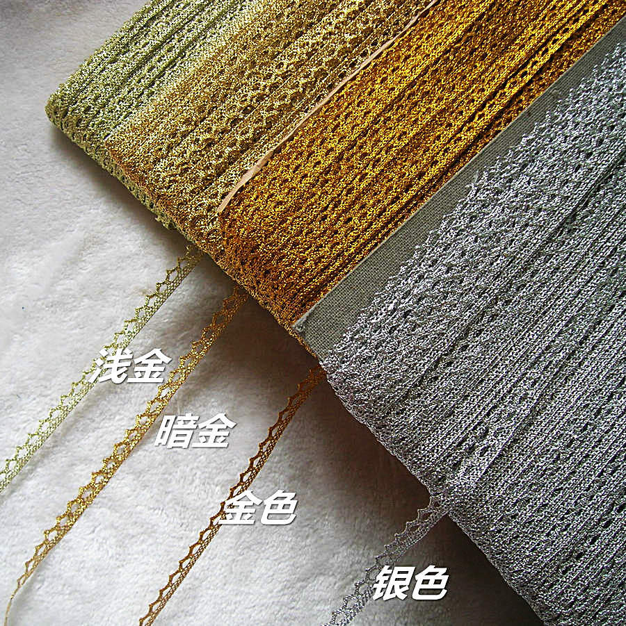 DIY手工花边辅料/金色 银色线狗牙齿形蕾丝窄金银葱线花边(1CM)