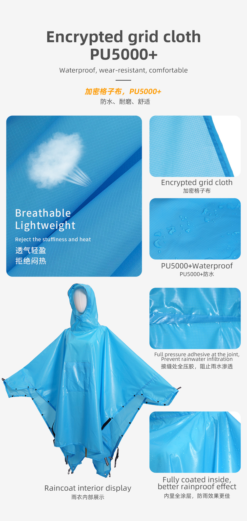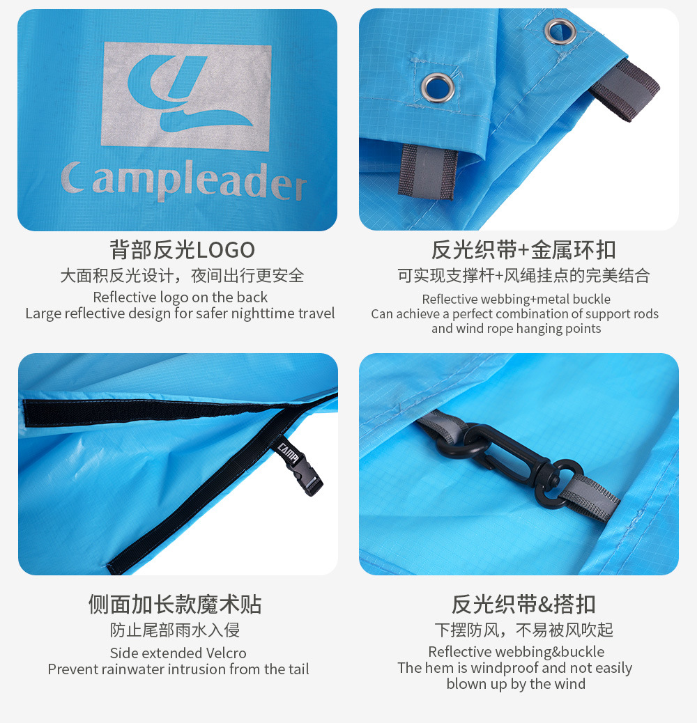 ブルーフィールド15dナイロンシリコンコーティング超軽量アウトドア登山ハイキングバックパックレインコート男女連体ポンチョ