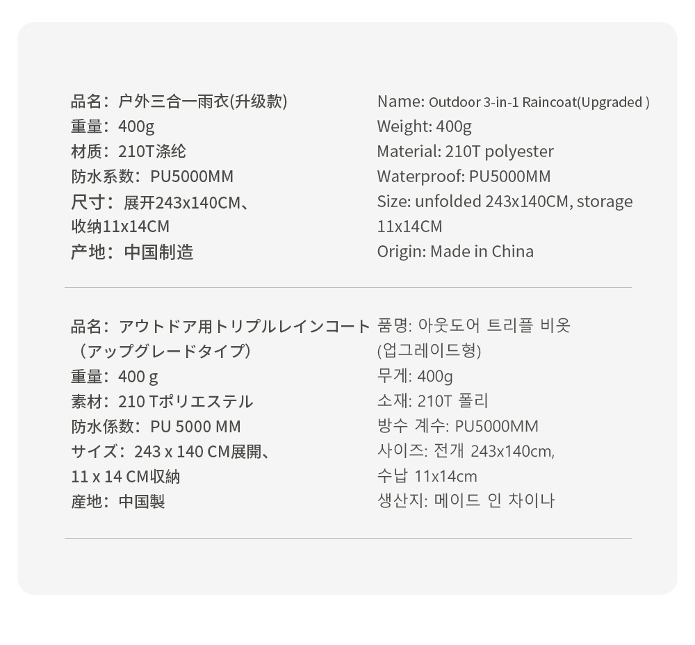 商品番号 スリーインワンレインコートのアップグレードバージョン