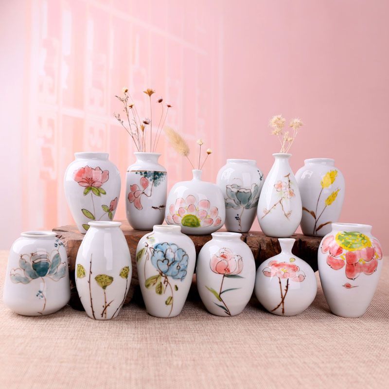 陶磁器のミニの小さい花瓶の景徳鎮の創意の陶磁器の置物の全釉の文芸の水培の植物の家庭の花の挿し込み