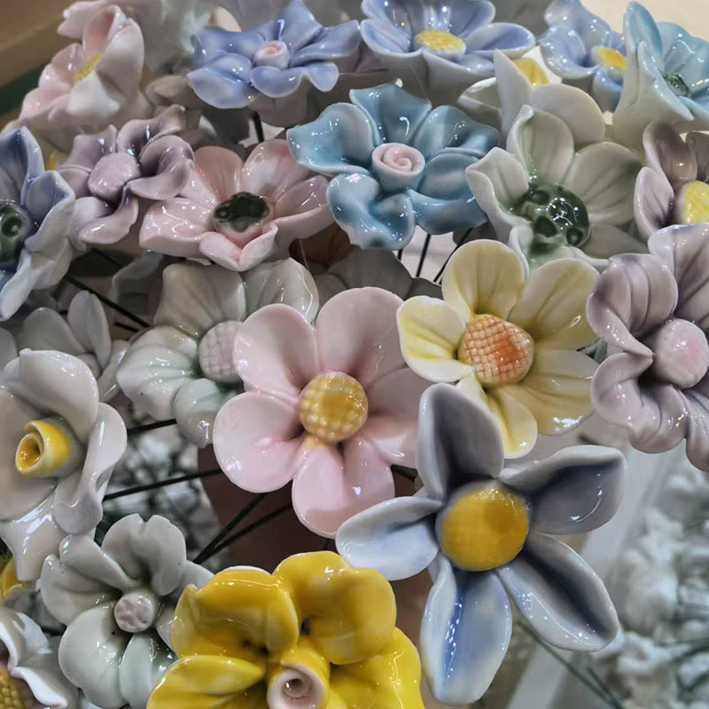 景徳鎮の陶磁器の花は高温で手作りします。