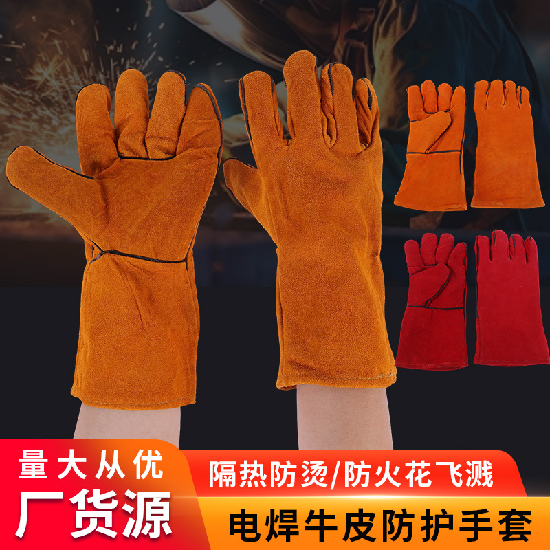 【产品名称】牛二层全皮虎口加固型电焊海员隔热手套焊工牛皮手套 电焊手套
