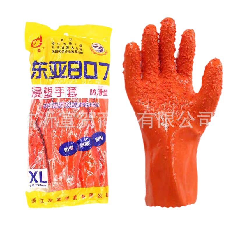 東アジア807滑り止め手袋pvcゴム綿毛内張り浸塑ラテックス工業労働保護手袋卸売り保護シールド