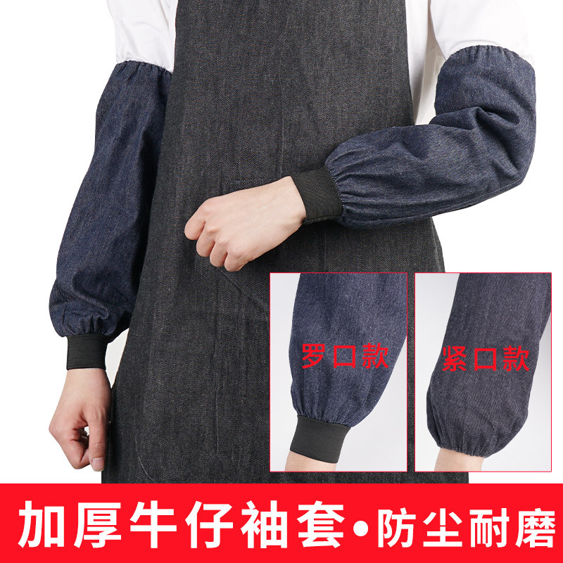 加大款牛仔布套袖电焊帆布袖套加长厨房袖头劳保干活耐脏护袖防尘